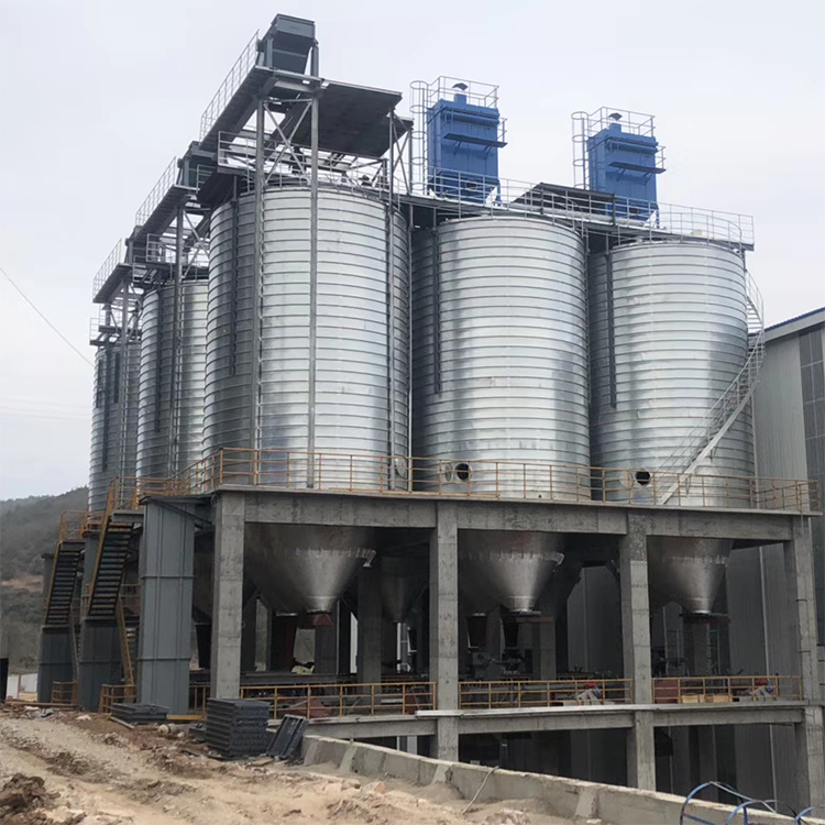 接收与清理设置在筒仓中央该形式筒仓一般采用对称排列,提升机井架固定,经过提升后的物料通过仓顶溜管进人筒仓。这种形式省去了仓顶输送设备和上通廊,从而节省了建造费用,缩短了建造工期。对于贮存时间要求较长的大型粮库,则应根据物料的流向、场地情况、工艺要求等合理地配置投料口、工作塔、烘干塔及成都钢板仓的位置。国华钢板仓介绍了这几种常见的进料形式,实际中可将各种形式相互组合,相互渗透,根据实际情况合理搭配,灵活选用。